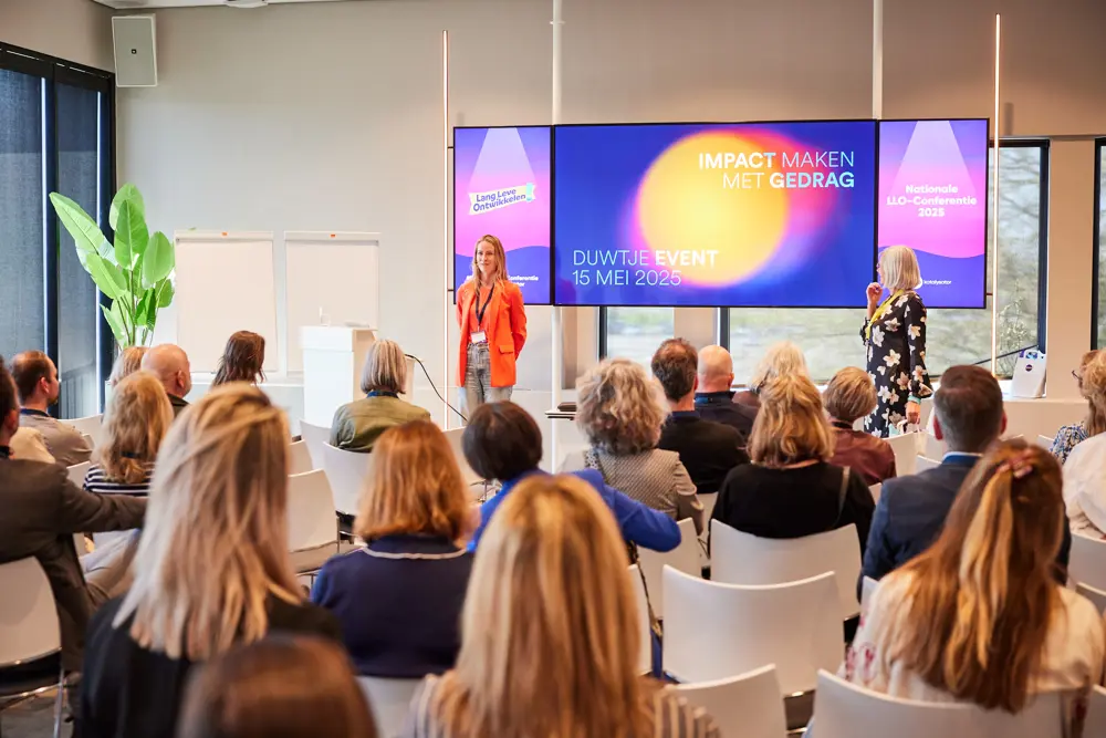 Hoe kunnen we het belang van leren en ontwikkelen tot actie omzetten? Hoe geven we mensen een duwtje in de juiste richting? Gedragsdeskundige Loes Kievitsbosch van Bureau Duwtje nam de aanwezigen tijdens de LLO-Conferentie mee in de wereld van nudging, het subtiel veranderen van gedrag.